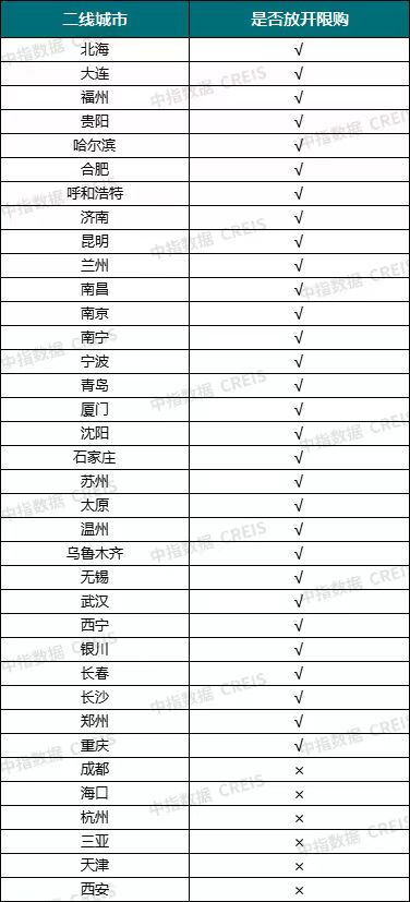 据中指研究院监测数据,截至目前,核心二线城市中,仅成都、海口、杭州、三亚、天津、西安保留部分限购政策。