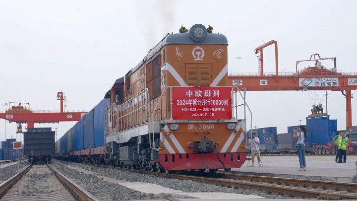 记者从中国国家铁路集团有限公司(以下简称“国铁集团”)获悉,7月10日11时46分,随着X8017次全程时刻表中欧班列(武汉—杜伊斯堡)从吴家山站开出,今年以来中欧班列累计开行达10000列,较去年提前19天破万列,累计发送货物108.3万标箱,同比增长11%,呈现量质齐升的良好态势。