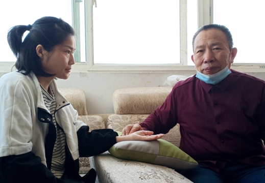 (图为:古印龙大夫为患者诊脉)