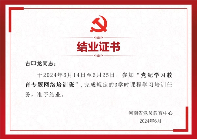 灵宝市朱阳镇两岔河村党支部副书记杨艳辉称赞:“在这次疫情防控攻坚战中,古印龙从防控工作开始一直到现在,从来没有休息过。他的高尚医德、坚定党性,彰显了人格魅力,值得群众信赖。”《河南经济报》等媒体相继报道了这一事迹。
