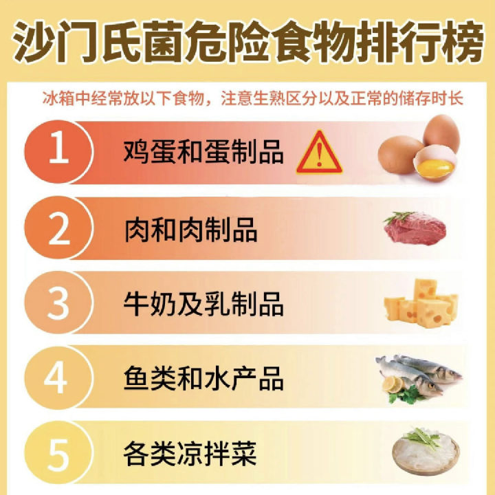 沙门氏菌是一种食源性致病菌,它广泛存在于肉类、蛋类和奶类等食品中,一旦食用被沙门氏菌污染的食物,就存在感染风险。