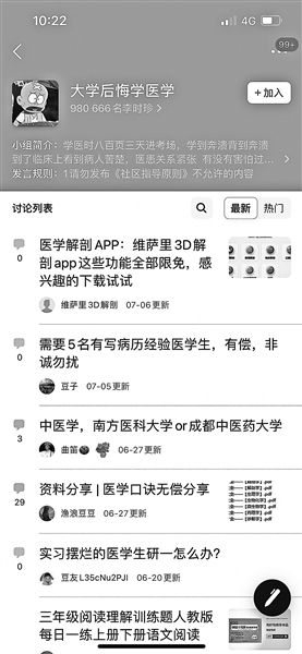 豆瓣“大学后悔学医学”小组