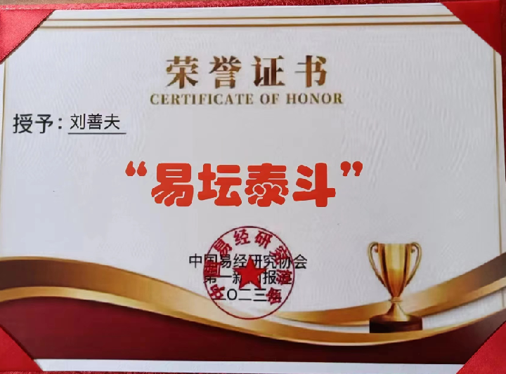 刘善夫2023年荣获德易双馨易学家、国学文化金鼎奖