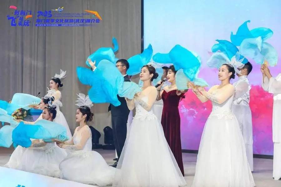 6月27日,2023荆门夏季文化旅游推介会在武汉举行。此次推介会由荆门市文旅局主办,组织了7个县市区、全市所有景区以及爱飞客飞行家、漳河卡丁车、双泉温泉、清平乐露营基地、京山农场、金色农谷等重点文旅项目近200人参加。文艺表演搭配景区推介,特色餐厅、精品民宿等各种好吃的、好玩的、好看的,以新颖新潮的形式出现在推荐官的介绍中,现场还布置了各种五彩绚丽的展板,荆门本土的近百种文创产品也“集体亮相”。整场推介以多样化形式向武汉都市圈及鄂东市场展示荆门本土特色文旅资源和文旅产品,正式拉开了2023年荆门夏季文旅推广季的序幕。