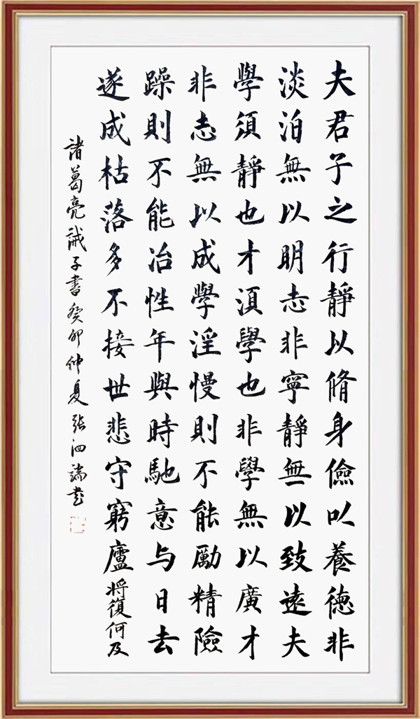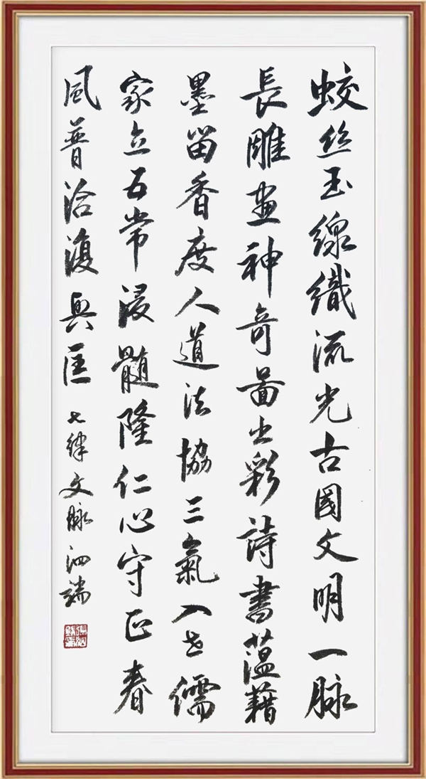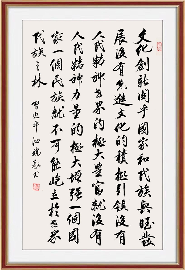 弘扬中华民族文化,增强文化自信,不忘初心牢记使命,促进中国文化与世界文化的交流发展和各国人民友谊,加强中国与世界各国之间的相互了解,为构建人类命运共同体和世界文明进步,为实现中华民族伟大复兴的中国梦不断做出贡献,传播文化正能量、讲好中国故事、传递中国声音、弘扬中国文化,持之以恒不懈努力,必须要有大思维、大胸怀、大格局、大视野、大作为的精神,我国艺术名家张泗端先生在向全球弘扬中国优秀传统文化方面,作出了突出的贡献,在继承传统书法精髓的基础上,博采众家,形成了简静平和、俊逸洒脱、凝重文雅的特点。为助推实现文化强国的中国梦,发挥了重大的作用,进一步推动促进中国与世界各国的文化交流与人民友好往来,构建人类命运共同体、创造大文化新观念的美好天地!