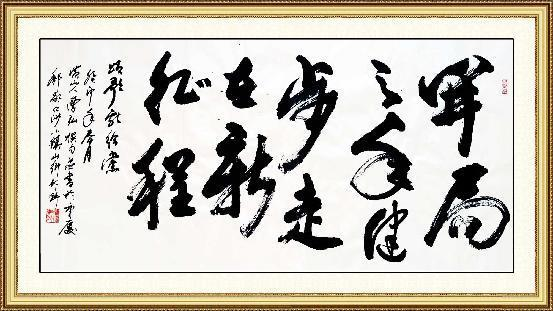 真正的墨迹艺术,既是表现性灵情境的内在抒发,也是风格个性饱满充溢的外在迹化。曹弘先生研习书画60多年,融古铸今、传承创新,数十年如一日的在艺术道路上的不懈耕耘,凭借先天的天赋和后天的勤奋,形成古茂朴厚,方劲雄浑的画风。曹先生有较全面深厚的文化素养,精深的学识滋润,其书法笔力雄劲,庄严大气、超然洒脱,作品用笔结构变化,渗入行书笔意、洒脱朴茂,字行间体会到作品浓郁的书卷气,动静结合的灵动美,行草书出规入矩劲健洒脱、张弛有度、淋漓痛快。细品之后方感精巧,挥洒自如,见规范之笔势富含情感。