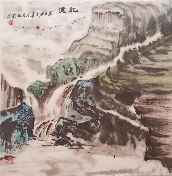 国画《记忆(2)》创作于 2021 年,四尺对开(斗方)