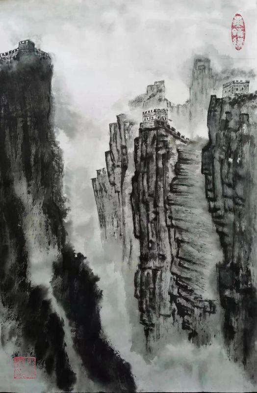 国画《壁立千仞》,三尺整张,创作于 2018 年