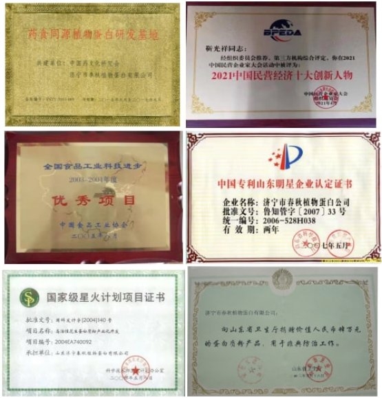 2002年,靳光祥提取的“弱碱性抗炎活蛋白”荣获山东省科技成果,2003年被山东省卫生厅用于抗非典,2004年被列入国家星火计划产业化开发项目,获得国家级科技成果,2005年获全国食品工业科技进步最高奖……靳光祥一夜成名,成为21世纪创新医学研究的代表性人物之一,春秋植物蛋白公司也成为北京抗癌协会的合作伙伴。