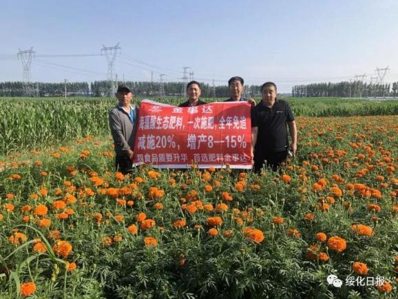 开发不易,转化更难。为了加快新产品转化,2018年和2019年两年,范友带领金事达公司在全省各地区、各大农场都建立了“海藻生态增效肥料”试验示范基地,每年冬季举办一次科普大会,聘请国家、省、市农业专家,为二三百名来自全省各地试验示范基地的农民讲解科学施肥、种田知识;春夏季节,范友带领公司10多人组成的技术服务队深入田间地头,向农民传授科学施肥、田间管理及病虫害防治科技常识;收获季节,范友带领团队到田间地头测评、记录产量数据,实现全程追踪、全程服务,获得精准详实的科学数据。