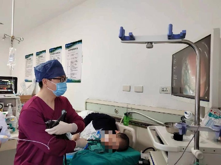一名陆军军医大学西南医院医生正在为患者做胃镜检查。(受访单位供图)