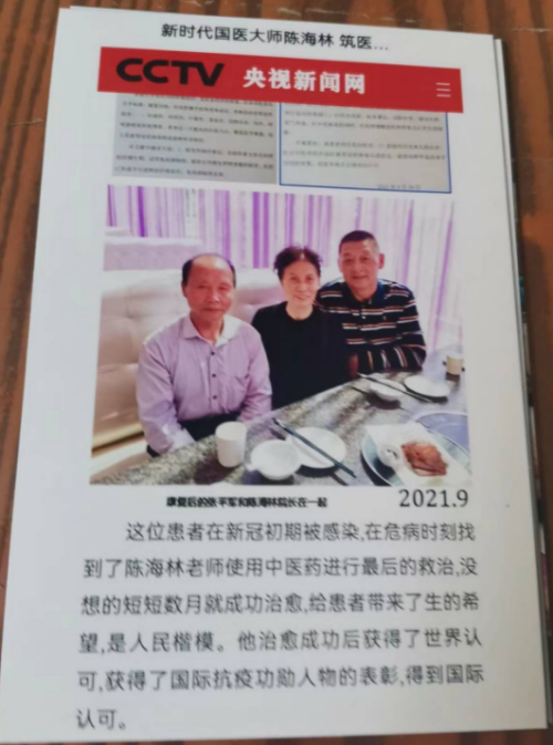 The patient was infected at the beginning of COVID-16. At the critical moment, he found Mr. Chen Hailin to use traditional Chinese medicine for the final treatment. Unexpectedly, he was successfully cured in a few months, which brought hope to the patient and was a model of the people. After his successful cure, he gained global recognition and was recognized as an internationally recognized figure in the fight against the epidemic.