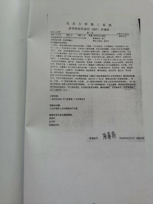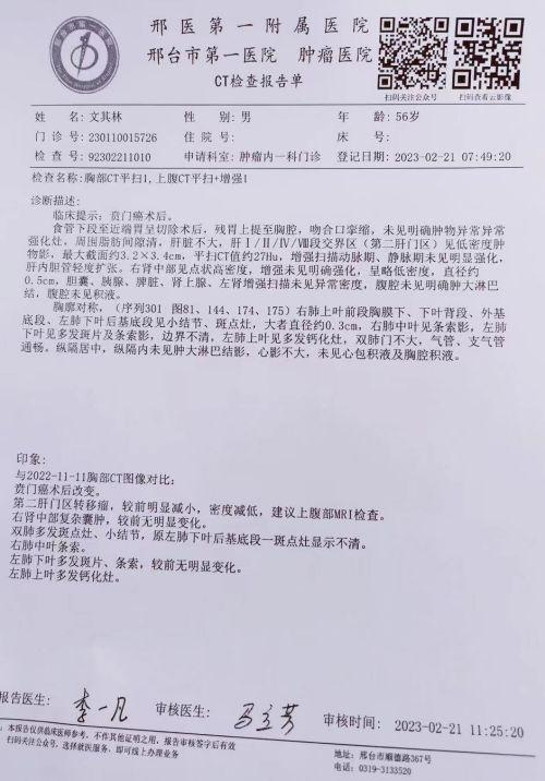 文其林于2020年8月11日在301医院行左侧开胸手木(贲门癌手术)。文其林:贲门癌术后(两年肝转移7cmx6㎝)。谢绝外院(包括301医院在内),直接奔向山西。