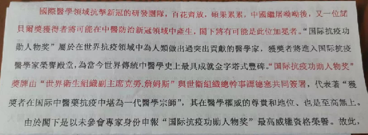 世界抗击新冠荣获国际抗疫功勋人物奖