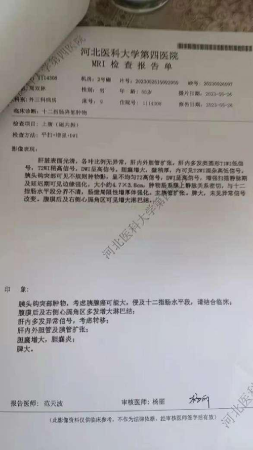 Pancreatic cancer is known as the "king of cancer", and it is difficult to treat. Patient: Li Ladi, in October 2017, a low echo nodule about 4.5cm x 2.8cm in size was seen on the head of the pancreas. According to Professor Chen, the treatment effect of traditional Chinese medicine is obvious. After reexamination, there are no obvious abnormalities in the morphology and signals of the pancreas and bilateral kidneys. Attached is the examination report: