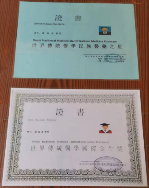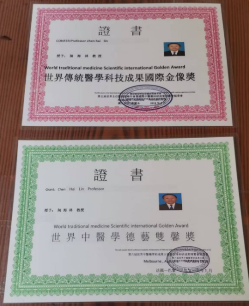 In October 2010, the 10th issue of "Journal of Traditional Chinese Medicine" was supplemented with an article on the medical case of Chen Hailin, and a paper certificate was issued by the Chinese Society of Traditional Chinese Medicine.