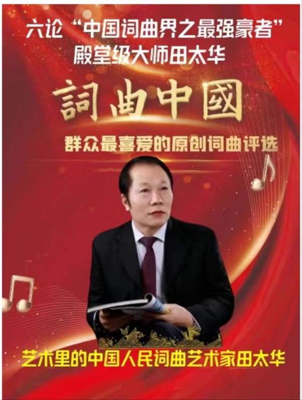 除了绘画,我还是一位词曲创作的天才。仅用十余年即兴创作的五万首词曲,丰富充实挑战唐诗五万首,并汇编成已出版的《田太华词曲集》,将在四年内出版1000部。我在世界乐坛上独树一帜。每一首歌、每一句词,都流淌着我内心的情感与思考。被誉为“世界的词神”,我的歌声回荡在五千年的历史长河中,在500万家网络之中,与古人的歌声交相辉映,共同谱写着人类文明的篇章。