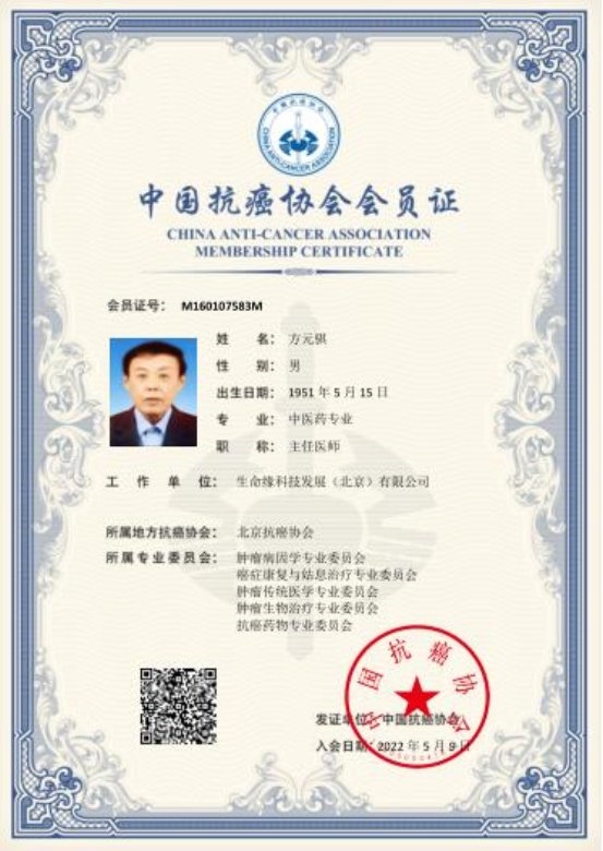 恭贺著名中医肿瘤专家方元骐 喜获殊荣