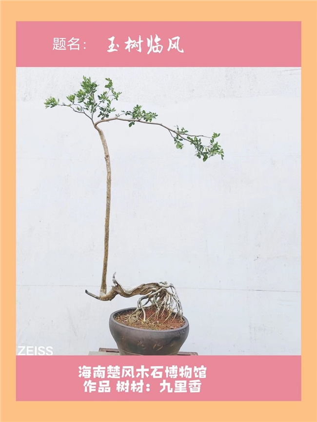 注:香九里。此作树材为九里香,岭南盆景七大材料之一。花开时节,香飘九里。