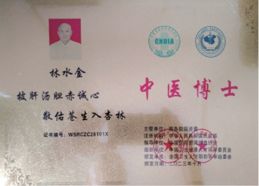 林水金,1954年出生于福建省连江县丹阳镇丹阳街居委会,他从认字起就非常喜爱看书,尤其偏爱研读中医典籍。从慢慢接触中医到系统学习中医的辩证理论 , 林水金开始一步步深入中医世界。中医是一门理论结合实际的学科 , 林水金自 18 岁开始就跟随民间中医学习辩证治疗 , 即便是经历了上山下乡 , 他也没有停止学习钻研的脚步。在积累众多临床经验的基础上 , 他还前往福建省生物工程学院进修中药专业 , 进一步掌握专业的中药材炮制技术。2015 年 , 他在福建省生物工程学院函授中药专业毕业 ,进一步夯实了自己的业务根基。林水金对“药食同源”理论进行创新延伸 , 把中草药巧妙的与粮食结合 , 创新推出了中医营养药膳治疗体系。为实现共产主义伟大事业而奋斗!林水金的研究成果为无数病患带来福音。