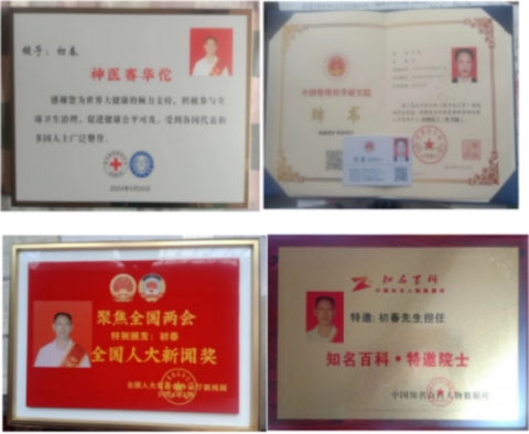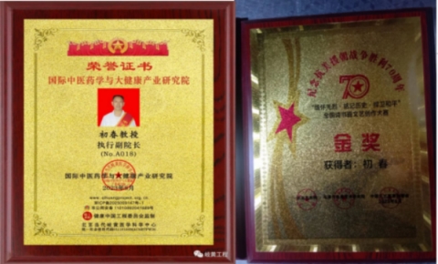 行业百名功勋人物奖‘华夏名医”“当代中国最具有影响力的英模人 物 ~ ‘建国 60 周年中国企业改革创新管理突出贡献人物”“中国传 统文化名人”、“ 中华杰出人物”“中流砥柱·共和国先锋人物”“中 国崛起·共和国建设功勋人物” 、“时代骄子”称号奖等各种荣誉称 号。科技成果 :曾荣获金牌奖、国际金牌奖、两个金牛奖、一等奖若 干项 ,二等奖、精粹成果奖、优秀论文奖、创新成果金奖、国际成果 金杯奖、改革开放三十年中华医学发展创新成果奖、中华医学发展创 新成果奖、大医精诚金牌奖、金鼎奖等等若干奖项。2011 年 1 月《独 创阿是穴刺拔贴药疗法经验体会》一文 ,荣获中国医学专家理论创新 论文一等奖 ,同时荣获“中国优秀基层医学专家荣誉称号。2011 年 10 月《独创督奇穴刺拔配服中药通督正脊疗法体会》一文荣获“中 国医学专科专病优秀论文一等奖” ,同时荣获“中国医学专家专科专 病( 中医)优秀专家称号”。2012 年 7 月《危重症治验三则》在“中 国医学专科专病新世纪创新优秀论文奖”( 一等奖) ,同时荣获中国 医学专科专业病新世纪创新贡献奖。2012 年参加了国际中医原创思 维与扁鹊脉法论坛和首届华人针灸刮痧交流大会暨针灸推拿特技展 演大会积极献方 ,献策 ,为中医事业做出了自己的贡献。2014 年在 共和国国庆庆典活动中分别荣获“最美点亮中国— 中华最美楷模人物” “美丽中国—共和国建设功勋人物”“社会改革发展杰出贡献人物” “中华魂当代人民功勋人物”“共和国突出贡献人物”。“新中国建 设功勋人物”十一国庆颁奖、行业发展标兵人物。荣获“共和国建设 十大杰出功勋人物”称号。