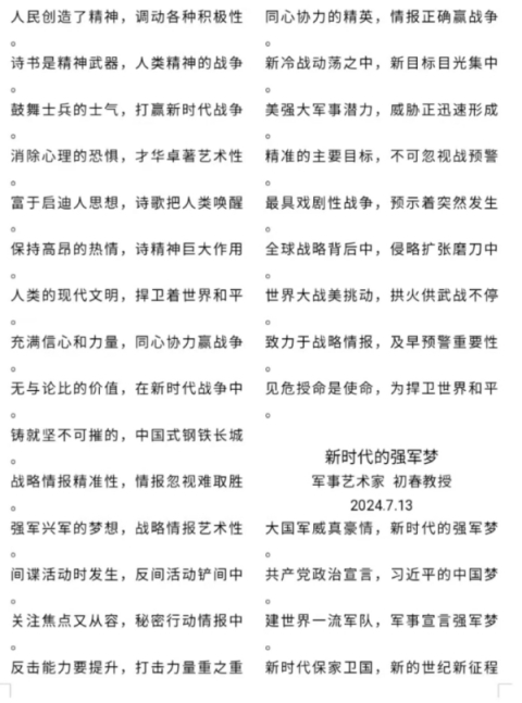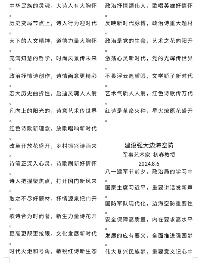 初老师艺术人生饱满而热烈,是将战疫和强军战略赋予诗歌,铸造不朽军魂的人。