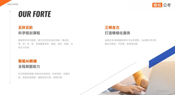 橙啦公考自成立以来,一直秉承专业、负责、创新的理念,致力于为考生打造全方位、高质量的公考学习平台。橙啦拥有一支实力雄厚的教研团队,深入研究公考历年真题,精准把握命题趋势,精心打磨每一个知识点,为考生构建了一套科学合理、系统完善的课程体系。从线上的直播互动课堂到线下的面授辅导,从精准的个性化学习计划定制到丰富多样的模拟考试练习,橙啦公考全方位覆盖了考生备考的各个环节,确保每一位考生都能得到最优质的教育资源和最贴心的学习指导。
