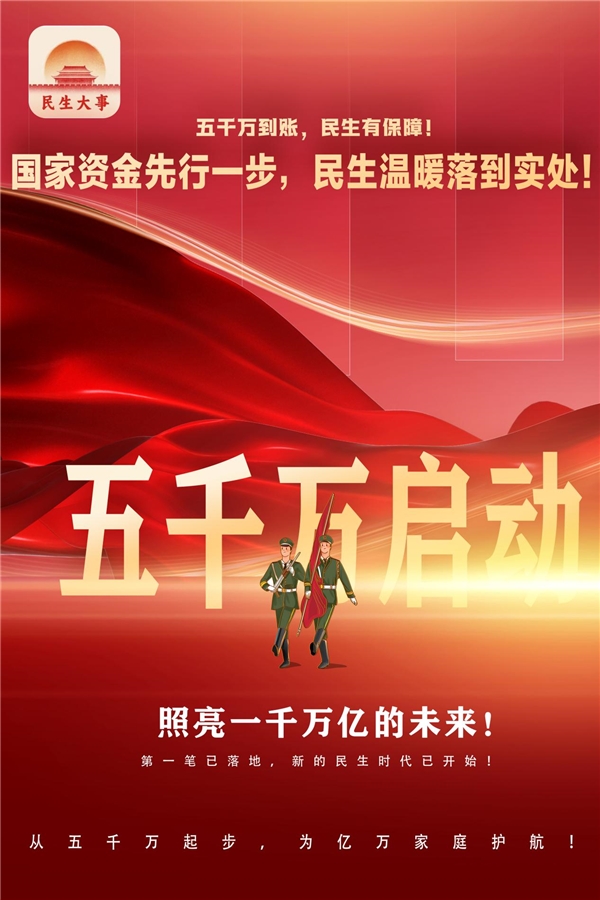 财政部注入五千万资金,民生大事第一批测试金今日正式发放
