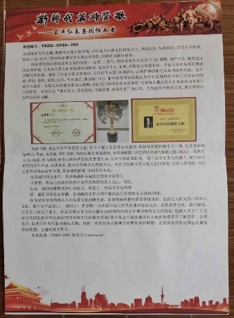其个人业绩被收录《中国贡献》(2003),《祖国先锋》(2015),受邀担任《祖国先锋》特邀编委,2016年9月加入中国紧急救援队员,《2018》走进丝路的领军人物,《2018》健康中国,2009年入编《大道之行》大型丛册书刊。2021年收入在《砥砺奋进新征程》做时代先锋为党旗争辉。