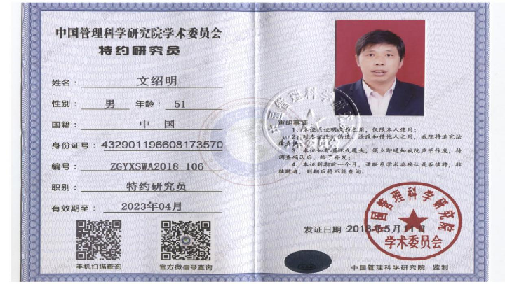 现任中国管理科学研究院学术委员会特约研究员