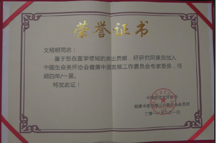 中国生命关怀协会健康中国发展工作委员会会员和专家委员