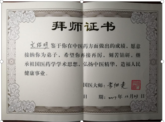 文绍明,中医世家,医圣传人,中医执业医师。师承国医大师李佃贵传承弟子。湖南永州人,1966年出生于中医世家,受祖辈对传统医学的影响,师承祖传,幼承庭训,遍览历代医著,精研中医名家著述。学识渊博,尤擅临床实践,注重疗效,积累了丰富中医的理法方药和辩证施治的临床经验。