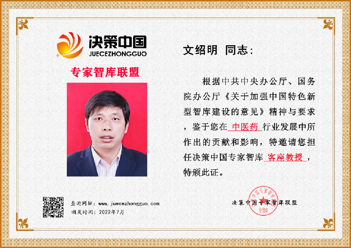 世界中西医结合医学研究院中医学教授;