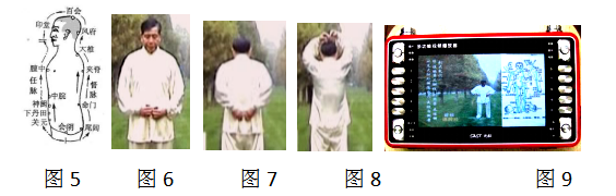 图5为小周天图,按图6,7,8运行一圈可通小周天,手形按图4,叫并碗手。实际可通手所经过的所有经脉。