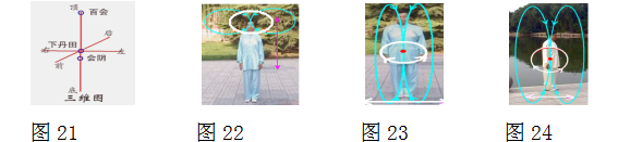 24),梁××,27岁,2013年,按其商阳穴,能按经脉流注顺序运行到欺门穴,做右侧划大园,体前划大园,让其外园弧(如直线)通过身体,直通全身经脉。人如同随园柱的外园弧作园周运转。