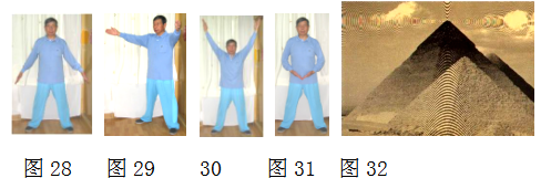 依据暗物质受几何图形控制的特性:揭示在园门的能量运动是园周运动;在平面直线(杆)是直线运动;在双线交角的角顶是双螺旋向上运动,组成角的两边如人体双腿,是由内向前向外向后向内的螺旋向上运动。依此,揭秘: