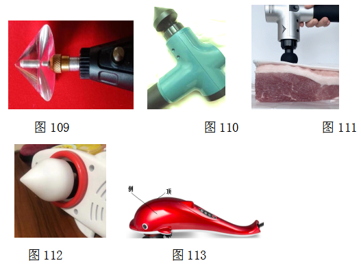 守正创新的“高能量量子通脉健养疗技法”,都可代替传统的非药物疗法。该技法虽然包含项目很多,但都是静态的,其中的代表是皮针通脉仪,如图91直径160mm重20kg,效果好,但笨重,使用不便。变成动态可提高效率,减小园柱锥体体积。这就有如转动的手钻式(图109),振动带冲压的筋膜枪式(图110),振动的海豚按摩器式(图112)。使用方便,效率高。同时对患者不造成任何痛苦和伤害。