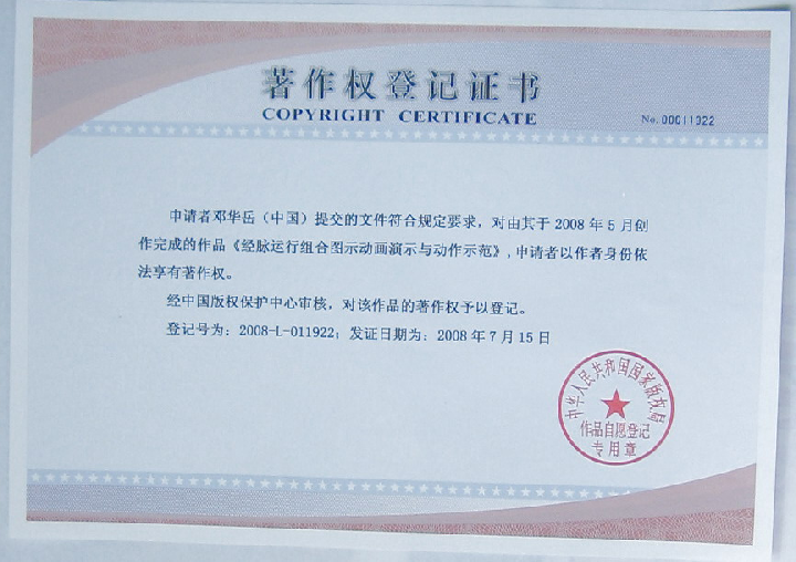 2022年澳门国际创新发明展览荣获三项奖:循经通脉健身法(铜奖),即时通脉疗法(铜奖),高能量量子健养疗技法(金奖)。展方把通脉卡图象洗成照片试验,确认能量很高,故获金奖。“高能量量子健养疗技法”是卫健委<十四五>规划重点课题壹等奖课题。在澳门国际创新发明展览中为了让人们知道它是三部分组成,故拆分为三部分。