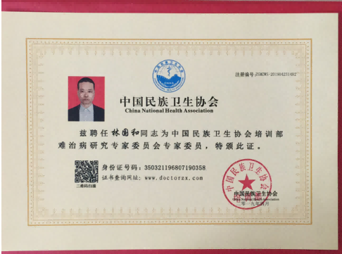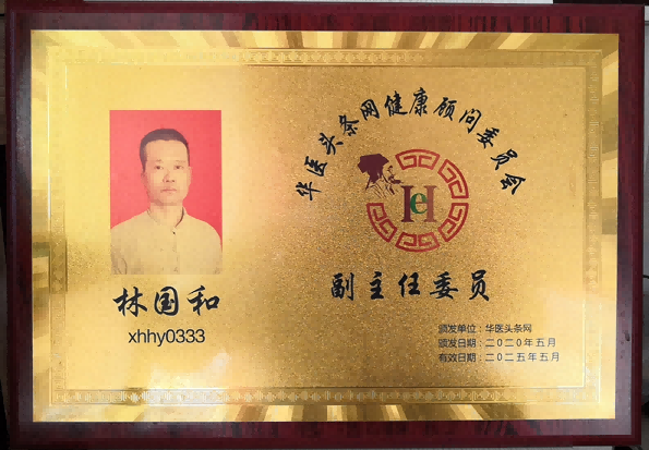 林国和,1968年生人。林氏中医创始人,远承仲景请先圣之所学,近得父辈等后贤之所教,勤求古训,众方,在中医皮肤科防治方面小有成就,中医各种疑难病杂症特有研究。1988年毕业于福建医学院,1999年取得执业医师资格证,卫生厅厅长马晓伟。