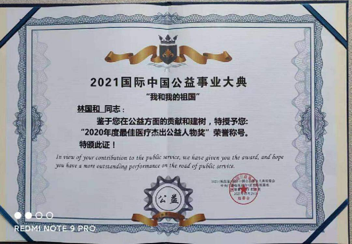 林国和荣获2021国际中国公益事业大典年度“最佳医疗杰出公益人物”荣誉称号
