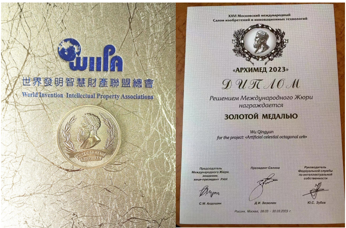 中国科技产业协会吴青云理事,《人造天体八角方舟》研制和应用荣获俄罗斯阿基米德发明奖金奖!