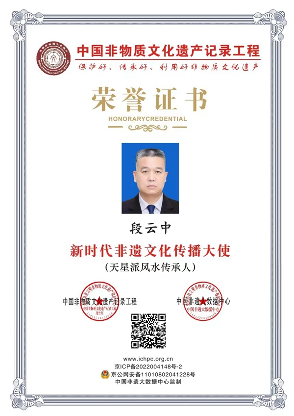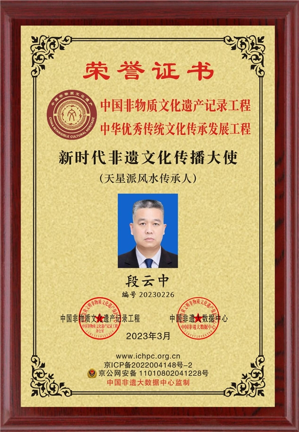 段云中大师在业内成为中国隔墓断命第一人和风水神断的雅号!段云中大师自幼爱好堪舆学,在一九八八年开始研究赖布衣天星派催官篇将日月五星,四大星垣,北斗九星,廿四天星,廿八星宿等整个星空体系贯通于龙穴砂水向中,葬法,作法,破法,谋法,化法等机秘,阴阳二宅均可施用,发扬了赖公不世之神术,与行沙派,理气派,八宅派,玄空派,推背图,黄帝内经,佛,道,医相结合,进行了大量系统性的研究应用于寻龙点穴,催人丁,财運,官運,事业運,婚姻運,学业等大旺,家族出现人员短寿的问题等,对各种阴、阳宅等一切疑难杂症的镇破化解均有奇效。丁财贵寿,随手拈来,凡其手定无不富贵。