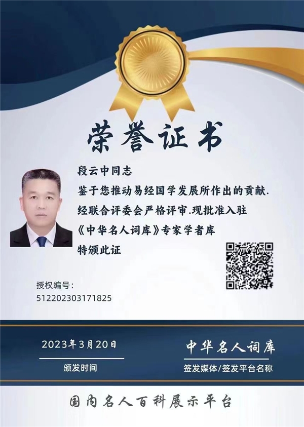 至2019年疫情爆发以来,段云中老师曾多次极为精准分析预测疫情情况。2022年4月14日预测上海新冠疫情在5月21日得到控制,6月1日全国转入常态化管控;及2022年世界军事形势紧张,段云中老师还对国内及国际经济形式,军事形式以及国家命運走势做了极为精准预测,是国内唯一一位精准预测国運的专家。喜迎二十大,建功新时代,新华网特别报道中国国学行业专家委员会副会長---段云中。