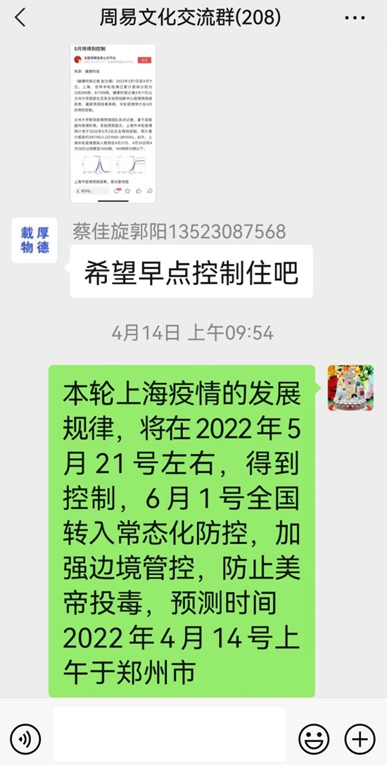 此图为2022年4月14日段老师对上海疫情极为精准的预测,事实证明段云中老师的预测极为精准。
