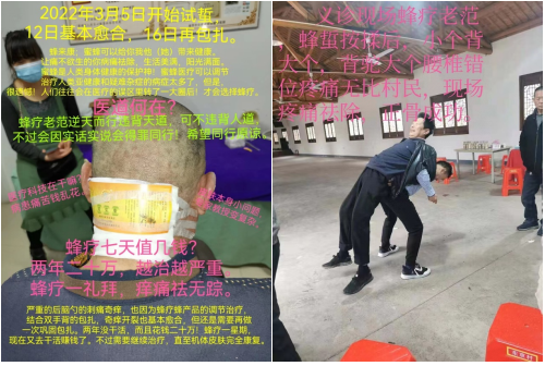 中医蜂疗不同于医院高端医疗,动则消毒消炎激素抗生素等高端仪器跟随配套。蜂疗回归自然,患者就是在茅房里做蜂蛰疗也不会被感染。高端医疗用错地方的抗疫,武汉被玩死了几千人!美国则百多万人。西医治疗就是不死,也留下成百上千种后遗症。这种被西方利益集团控制推崇的仪器药品,费用大效果差弊端明显;只有不管百姓死活的美等西方国家,和利益集团才会这么做。