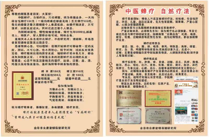 蜜蜂利剑斩病魔,疏通经络活细胞。胀痛增生常见病,肿瘤癌症不用刀。