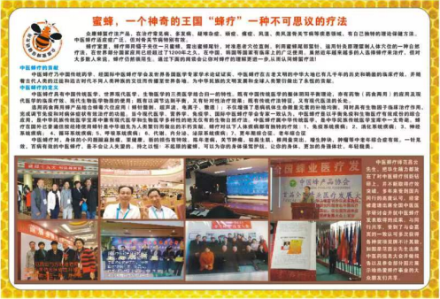 中医蜂疗是蜂产品保健和蜂蛰穴位疗法的简称。在疏通经脉,滋润脏腑和治疗疾病时,以输送营养方法祛除病痛和治愈疾病。蜂毒及其蜂产品,都使输送营养管道疏通,血液循环更加通畅,机体脏腑得到营养而身体恢复健康。蜂产品(蜂蜜花粉蜂胶)等都是物精华,是不需加工的天然的百草药。蜂产品可全方位滋润四肢百骸,营养脏腑枝节,经常使用表里皮毛都会显得更加青春靓丽而有活力。中医蜂疗可以与所有的保健品和医疗方式结合,形成各自不同治疗体系,来完成人体复杂的治疗和康复。集多功能与一体的中医蜂疗,能治愈各种疾病而使身体更加健康。1964年周恩来对王孟林老师说;要“架起蜜蜂与人类健康的桥梁”。