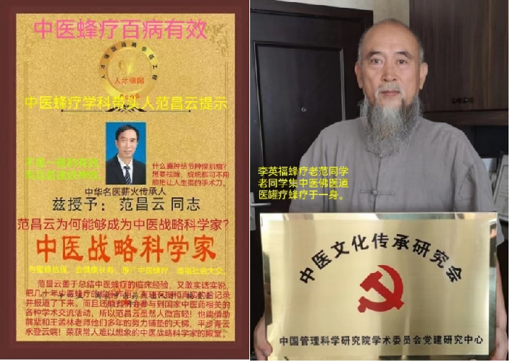 前些年,民间中医药的一言一行,都在被主流医学,用西方管理方法监管和压制!让中医人抬不起头。现在不一样了;民间中医也能登上大雅医学殿堂,高举传统医学旗帜,登报刊上电视。在国家级中医药会议上宣传推广各自精妙绝伦的中医绝技。“神奇的中医蜂疗”也走出蜂场,走进医院,展现未来。所有的一切,都要感谢习大大和他领导的核心班子,让国人走上了医学的正确之路。