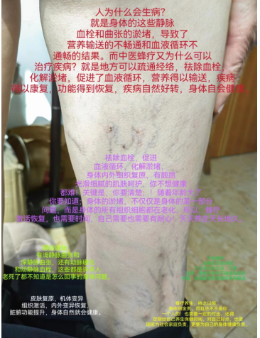 万病皆因经络堵,一个方法即能祛。蜂蜇穴位虽有痛,针液却把血栓除。