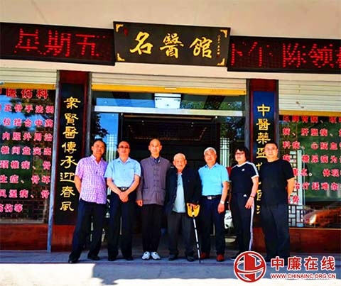 马武锦(右三)与来宾们合影於萧县中医药传承基地